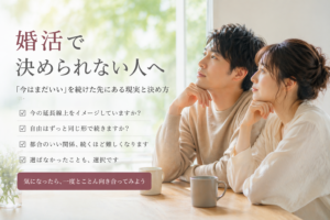 婚活で決められない人へ|「今はまだいい」を続けた先にある現実と決め方New!!