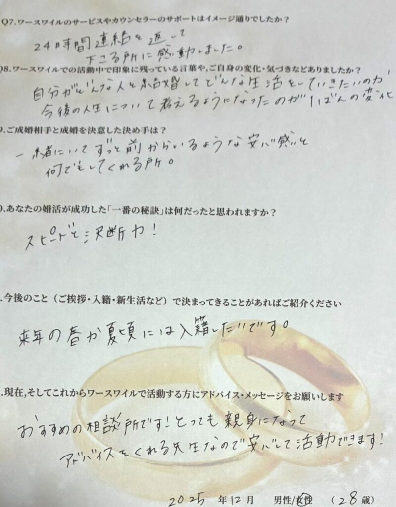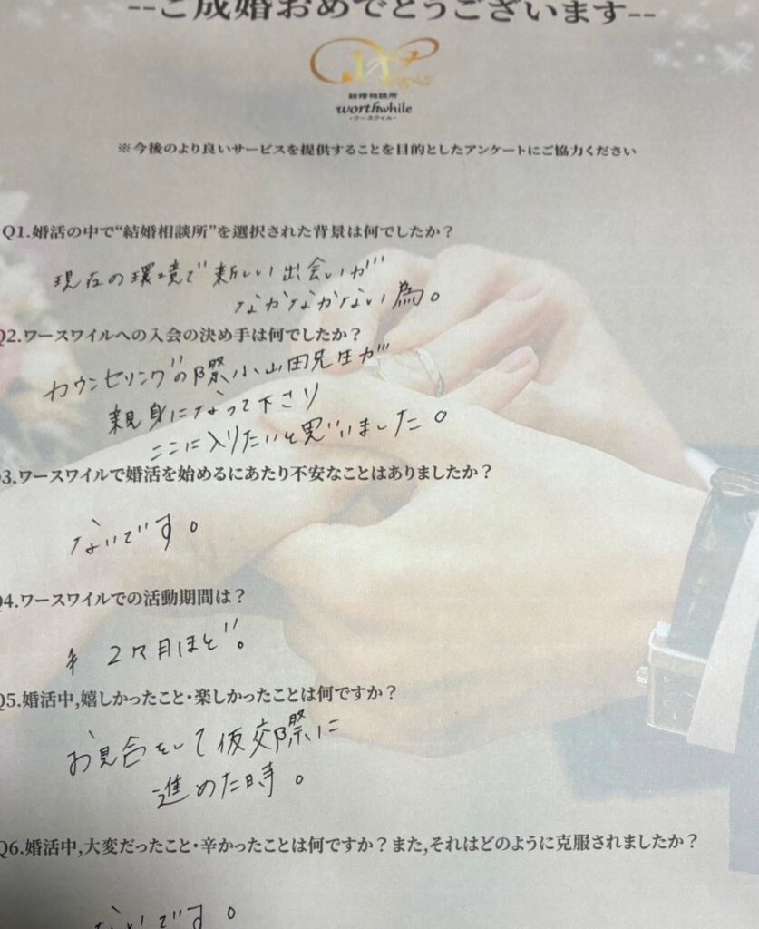ご成婚アンケートにご協力いただいたので、ご紹介させていただきます。